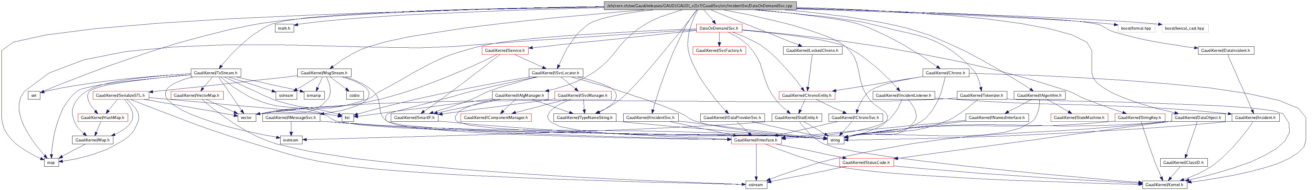 #include <string>#include <set>#include <map>#include <math.h>#include "GaudiKernel/MsgStream.h"#include "GaudiKernel/Tokenizer.h"#include "GaudiKernel/DataObject.h"#include "GaudiKernel/IAlgorithm.h"#include "GaudiKernel/ISvcLocator.h"#include "GaudiKernel/IAlgManager.h"#include "GaudiKernel/IIncidentSvc.h"#include "GaudiKernel/DataIncident.h"#include "GaudiKernel/IDataProviderSvc.h"#include "GaudiKernel/TypeNameString.h"#include "GaudiKernel/ToStream.h"#include "GaudiKernel/Chrono.h"#include "GaudiKernel/LockedChrono.h"#include "DataOnDemandSvc.h"#include "boost/format.hpp"#include "boost/lexical_cast.hpp"