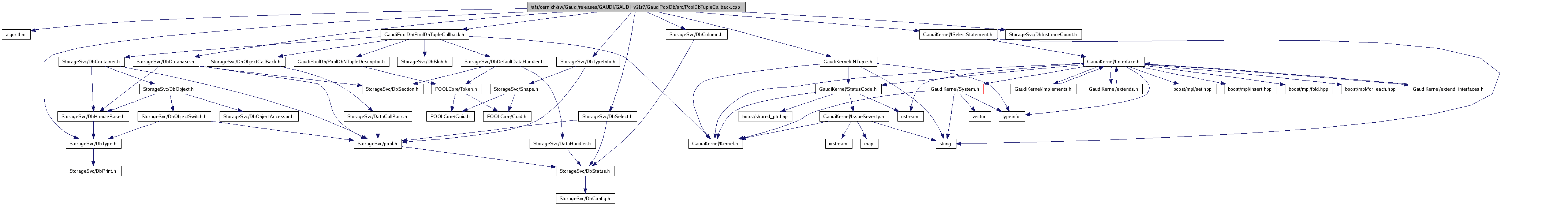 #include <algorithm>#include "GaudiPoolDb/PoolDbTupleCallback.h"#include "GaudiKernel/INTuple.h"#include "GaudiKernel/ISelectStatement.h"#include "StorageSvc/DbType.h"#include "StorageSvc/DbSelect.h"#include "StorageSvc/DbColumn.h"#include "StorageSvc/DbTypeInfo.h"#include "StorageSvc/DbDatabase.h"#include "StorageSvc/DbInstanceCount.h"