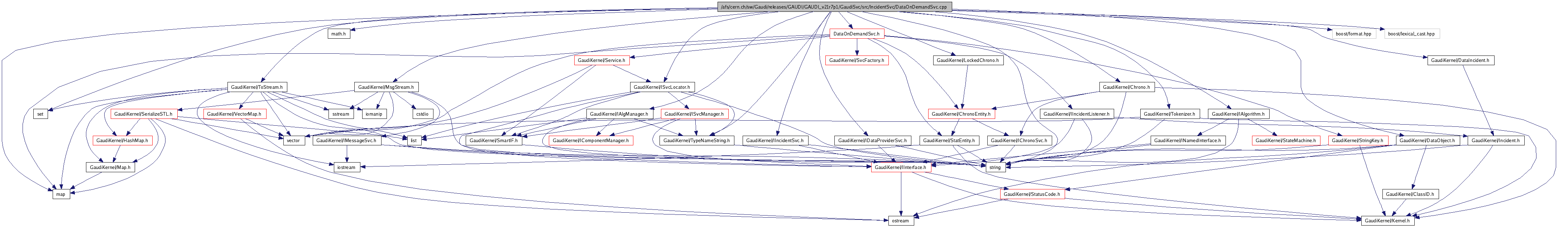 #include <string>#include <set>#include <map>#include <math.h>#include "GaudiKernel/MsgStream.h"#include "GaudiKernel/Tokenizer.h"#include "GaudiKernel/DataObject.h"#include "GaudiKernel/IAlgorithm.h"#include "GaudiKernel/ISvcLocator.h"#include "GaudiKernel/IAlgManager.h"#include "GaudiKernel/IIncidentSvc.h"#include "GaudiKernel/DataIncident.h"#include "GaudiKernel/IDataProviderSvc.h"#include "GaudiKernel/TypeNameString.h"#include "GaudiKernel/ToStream.h"#include "GaudiKernel/Chrono.h"#include "GaudiKernel/LockedChrono.h"#include "DataOnDemandSvc.h"#include "boost/format.hpp"#include "boost/lexical_cast.hpp"