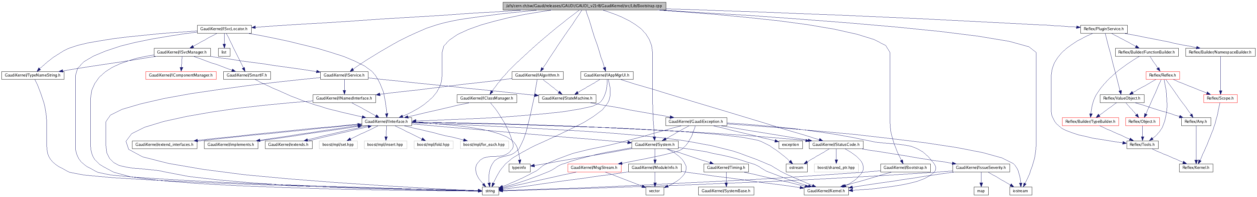 #include <iostream>#include "GaudiKernel/Bootstrap.h"#include "GaudiKernel/System.h"#include "GaudiKernel/IInterface.h"#include "GaudiKernel/IAlgorithm.h"#include "GaudiKernel/IService.h"#include "GaudiKernel/IAppMgrUI.h"#include "GaudiKernel/ISvcLocator.h"#include "GaudiKernel/IClassManager.h"#include "Reflex/PluginService.h"