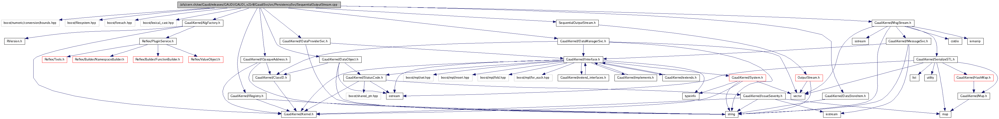 #include <boost/numeric/conversion/bounds.hpp>#include <boost/filesystem.hpp>#include <boost/foreach.hpp>#include <boost/lexical_cast.hpp>#include "GaudiKernel/AlgFactory.h"#include "GaudiKernel/IRegistry.h"#include "GaudiKernel/IDataManagerSvc.h"#include "GaudiKernel/IDataProviderSvc.h"#include "GaudiKernel/IOpaqueAddress.h"#include "GaudiKernel/DataStoreItem.h"#include "GaudiKernel/DataObject.h"#include "GaudiKernel/MsgStream.h"#include "SequentialOutputStream.h"