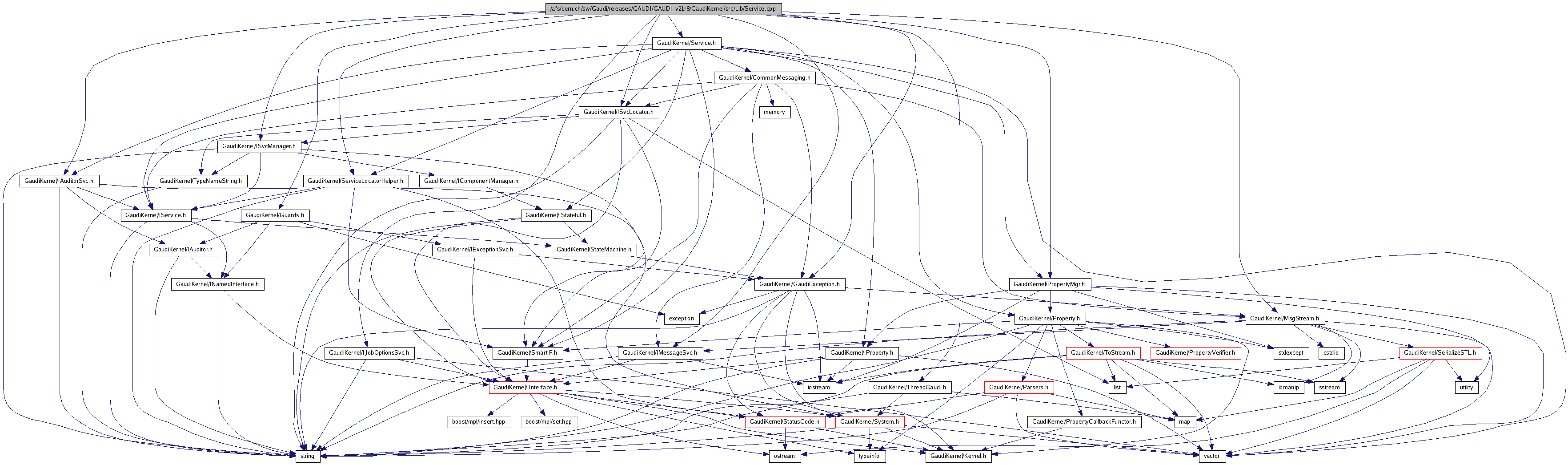 #include "GaudiKernel/Service.h"#include "GaudiKernel/PropertyMgr.h"#include "GaudiKernel/IMessageSvc.h"#include "GaudiKernel/MsgStream.h"#include "GaudiKernel/ISvcLocator.h"#include "GaudiKernel/ISvcManager.h"#include "GaudiKernel/IAuditorSvc.h"#include "GaudiKernel/IJobOptionsSvc.h"#include "GaudiKernel/GaudiException.h"#include "GaudiKernel/ServiceLocatorHelper.h"#include "GaudiKernel/ThreadGaudi.h"#include "GaudiKernel/Guards.h"