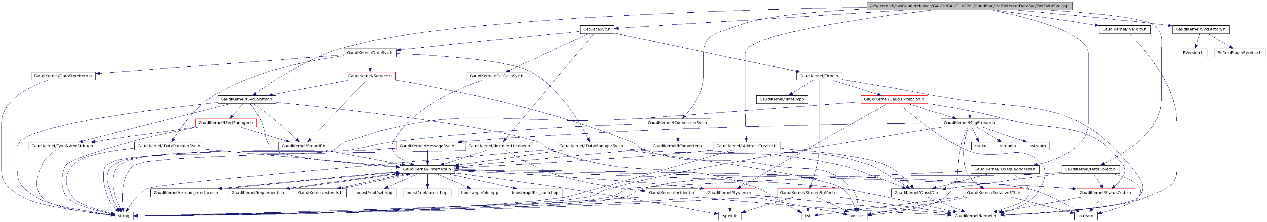 #include "DetDataSvc.h"#include "GaudiKernel/IAddressCreator.h"#include "GaudiKernel/IConversionSvc.h"#include "GaudiKernel/IOpaqueAddress.h"#include "GaudiKernel/ISvcLocator.h"#include "GaudiKernel/IValidity.h"#include "GaudiKernel/DataObject.h"#include "GaudiKernel/MsgStream.h"#include "GaudiKernel/SvcFactory.h"