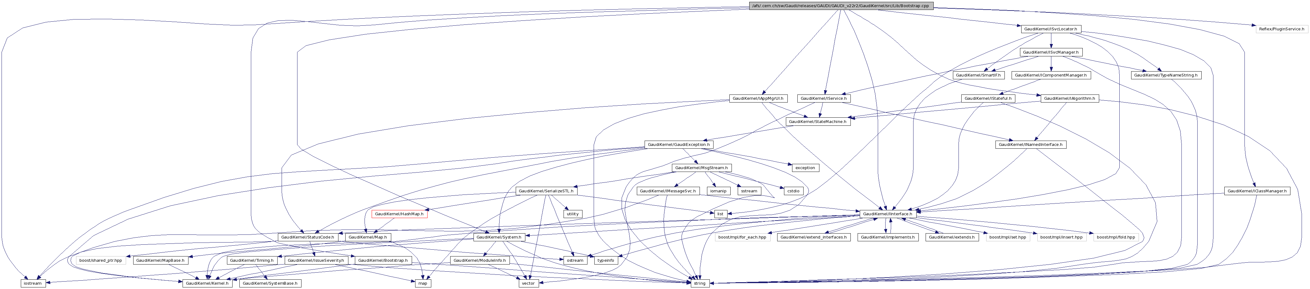 #include <iostream>#include "GaudiKernel/Bootstrap.h"#include "GaudiKernel/System.h"#include "GaudiKernel/IInterface.h"#include "GaudiKernel/IAlgorithm.h"#include "GaudiKernel/IService.h"#include "GaudiKernel/IAppMgrUI.h"#include "GaudiKernel/ISvcLocator.h"#include "GaudiKernel/IClassManager.h"#include "Reflex/PluginService.h"
