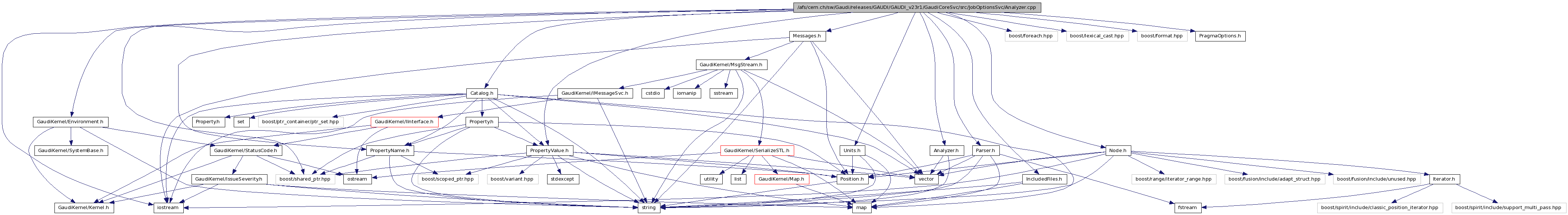 #include <iostream>#include <boost/foreach.hpp>#include <boost/lexical_cast.hpp>#include <boost/format.hpp>#include <boost/shared_ptr.hpp>#include "Analyzer.h"#include "Parser.h"#include "Messages.h"#include "Catalog.h"#include "Units.h"#include "PragmaOptions.h"#include "Node.h"#include "IncludedFiles.h"#include "PropertyName.h"#include "PropertyValue.h"#include "GaudiKernel/Environment.h"