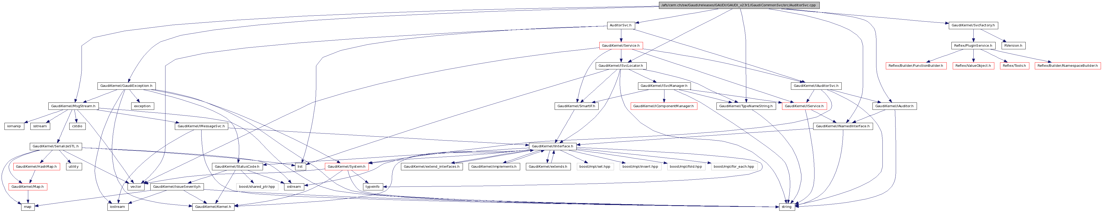 #include "GaudiKernel/MsgStream.h"#include "GaudiKernel/ISvcLocator.h"#include "GaudiKernel/IAuditor.h"#include "GaudiKernel/INamedInterface.h"#include "GaudiKernel/SvcFactory.h"#include "GaudiKernel/TypeNameString.h"#include "GaudiKernel/GaudiException.h"#include "AuditorSvc.h"