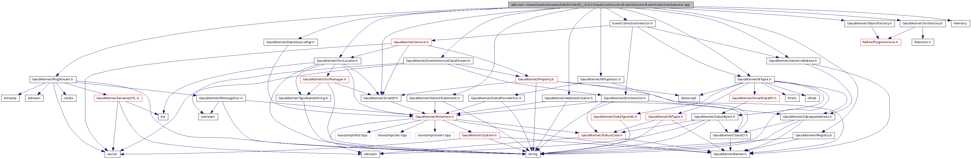#include "GaudiKernel/SmartIF.h"#include "GaudiKernel/SvcFactory.h"#include "GaudiKernel/ObjectFactory.h"#include "GaudiKernel/GenericAddress.h"#include "GaudiKernel/MsgStream.h"#include "GaudiKernel/IRegistry.h"#include "GaudiKernel/INTupleSvc.h"#include "GaudiKernel/ISvcLocator.h"#include "GaudiKernel/IDataSourceMgr.h"#include "GaudiKernel/IAddressCreator.h"#include "GaudiKernel/ISelectStatement.h"#include "GaudiKernel/NTuple.h"#include "GaudiKernel/EventSelectorDataStream.h"#include "EventCollectionSelector.h"#include <memory>