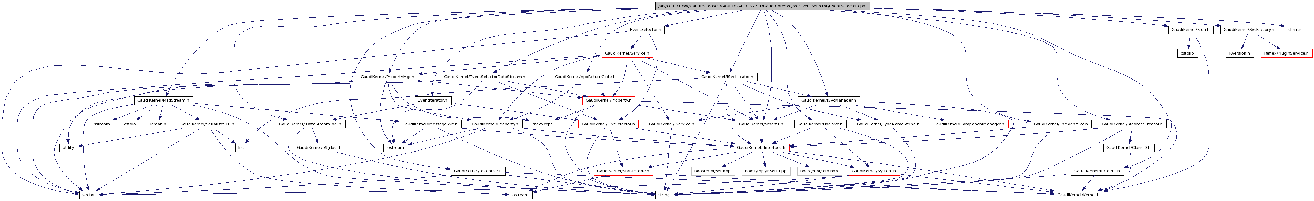 #include "GaudiKernel/xtoa.h"#include "GaudiKernel/SmartIF.h"#include "GaudiKernel/Incident.h"#include "GaudiKernel/SvcFactory.h"#include "GaudiKernel/Tokenizer.h"#include "GaudiKernel/MsgStream.h"#include "GaudiKernel/IIncidentSvc.h"#include "GaudiKernel/ISvcLocator.h"#include "GaudiKernel/ISvcManager.h"#include "GaudiKernel/IToolSvc.h"#include "GaudiKernel/IDataStreamTool.h"#include "GaudiKernel/IAddressCreator.h"#include "GaudiKernel/PropertyMgr.h"#include "GaudiKernel/EventSelectorDataStream.h"#include "GaudiKernel/AppReturnCode.h"#include "EventSelector.h"#include "EventIterator.h"#include <climits>
