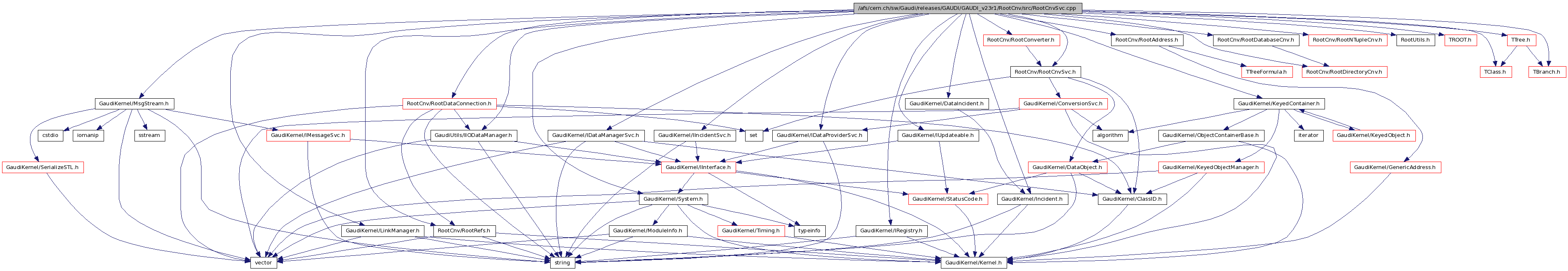 #include "GaudiKernel/MsgStream.h"#include "GaudiKernel/IRegistry.h"#include "GaudiKernel/IUpdateable.h"#include "GaudiKernel/IIncidentSvc.h"#include "GaudiKernel/IDataManagerSvc.h"#include "GaudiKernel/IDataProviderSvc.h"#include "GaudiKernel/KeyedContainer.h"#include "GaudiKernel/DataIncident.h"#include "GaudiKernel/LinkManager.h"#include "GaudiKernel/Incident.h"#include "GaudiKernel/System.h"#include "GaudiUtils/IIODataManager.h"#include "RootCnv/RootRefs.h"#include "RootCnv/RootCnvSvc.h"#include "RootCnv/RootAddress.h"#include "RootCnv/RootConverter.h"#include "RootCnv/RootDatabaseCnv.h"#include "RootCnv/RootDirectoryCnv.h"#include "RootCnv/RootNTupleCnv.h"#include "RootCnv/RootDataConnection.h"#include "RootUtils.h"#include "TROOT.h"#include "TClass.h"#include "TTree.h"#include "TBranch.h"