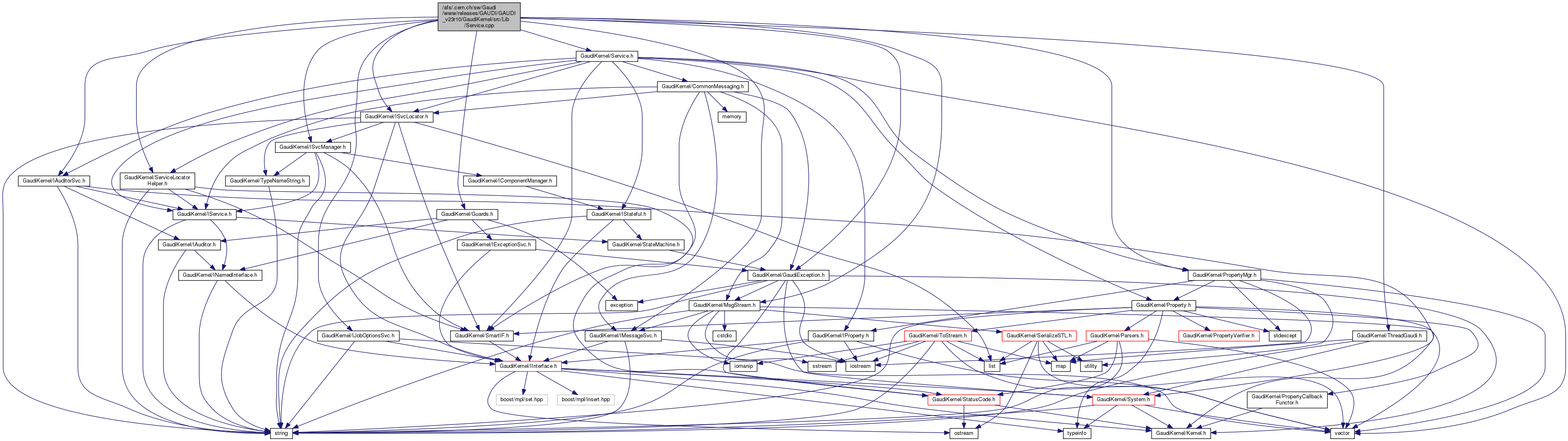 #include "GaudiKernel/Service.h"#include "GaudiKernel/PropertyMgr.h"#include "GaudiKernel/IMessageSvc.h"#include "GaudiKernel/MsgStream.h"#include "GaudiKernel/ISvcLocator.h"#include "GaudiKernel/ISvcManager.h"#include "GaudiKernel/IAuditorSvc.h"#include "GaudiKernel/IJobOptionsSvc.h"#include "GaudiKernel/GaudiException.h"#include "GaudiKernel/ServiceLocatorHelper.h"#include "GaudiKernel/ThreadGaudi.h"#include "GaudiKernel/Guards.h"