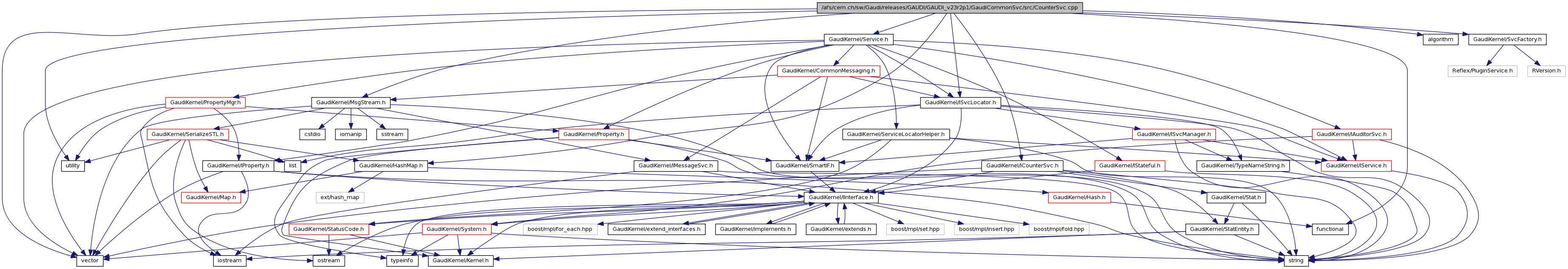 #include <utility>#include <vector>#include <algorithm>#include <functional>#include "GaudiKernel/ICounterSvc.h"#include "GaudiKernel/ISvcLocator.h"#include "GaudiKernel/SvcFactory.h"#include "GaudiKernel/MsgStream.h"#include "GaudiKernel/Service.h"#include "GaudiKernel/HashMap.h"