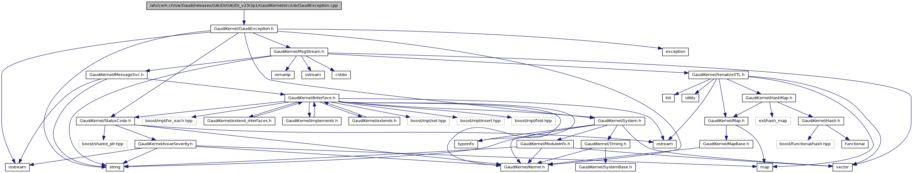 Include dependency graph for GaudiException.cpp: