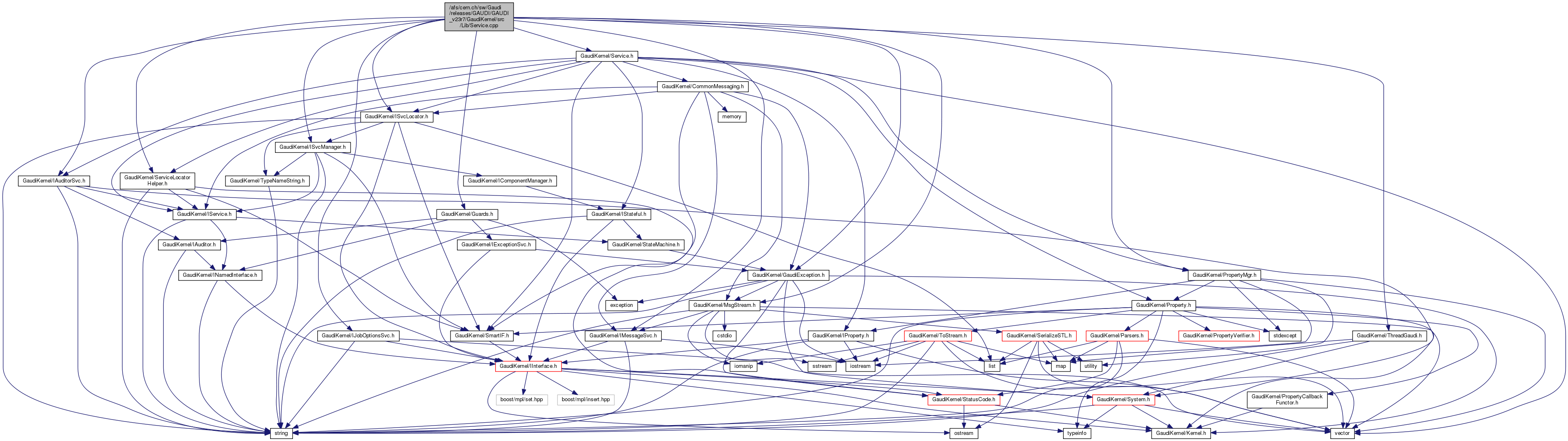 #include "GaudiKernel/Service.h"#include "GaudiKernel/PropertyMgr.h"#include "GaudiKernel/IMessageSvc.h"#include "GaudiKernel/MsgStream.h"#include "GaudiKernel/ISvcLocator.h"#include "GaudiKernel/ISvcManager.h"#include "GaudiKernel/IAuditorSvc.h"#include "GaudiKernel/IJobOptionsSvc.h"#include "GaudiKernel/GaudiException.h"#include "GaudiKernel/ServiceLocatorHelper.h"#include "GaudiKernel/ThreadGaudi.h"#include "GaudiKernel/Guards.h"