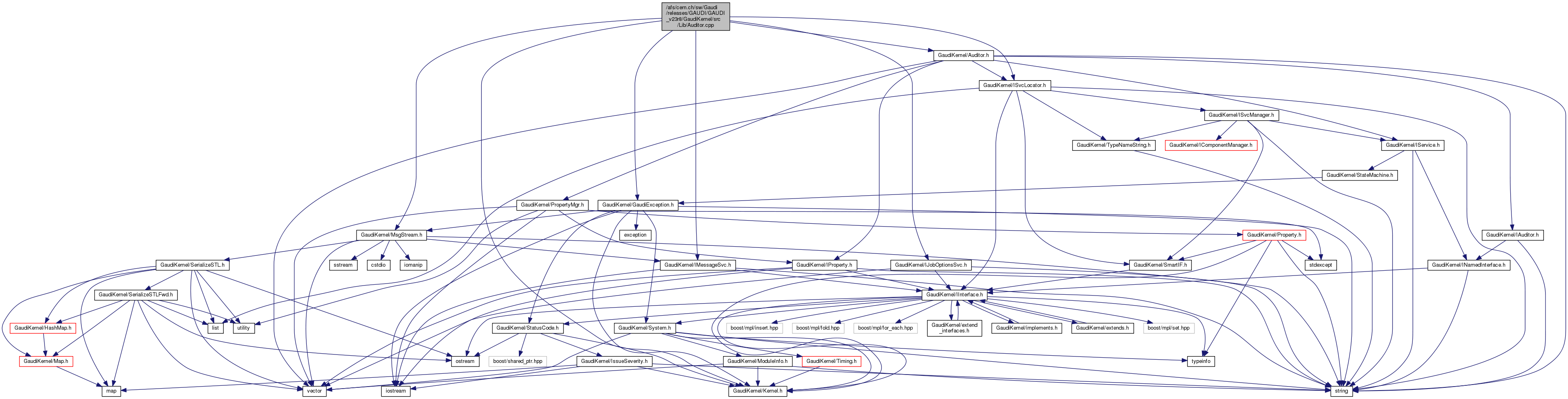 #include "GaudiKernel/Kernel.h"#include "GaudiKernel/ISvcLocator.h"#include "GaudiKernel/IMessageSvc.h"#include "GaudiKernel/IJobOptionsSvc.h"#include "GaudiKernel/Auditor.h"#include "GaudiKernel/MsgStream.h"#include "GaudiKernel/GaudiException.h"