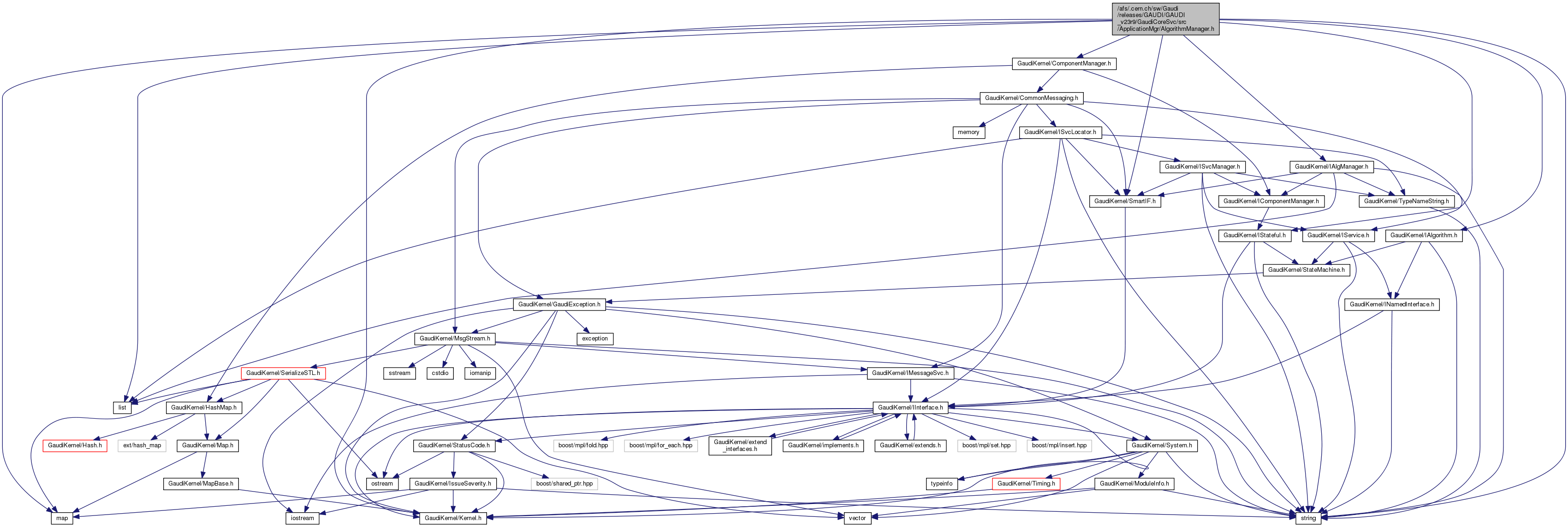 #include "GaudiKernel/Kernel.h"#include "GaudiKernel/IAlgManager.h"#include "GaudiKernel/IStateful.h"#include "GaudiKernel/ComponentManager.h"#include "GaudiKernel/SmartIF.h"#include "GaudiKernel/IAlgorithm.h"#include <string>#include <list>#include <map>