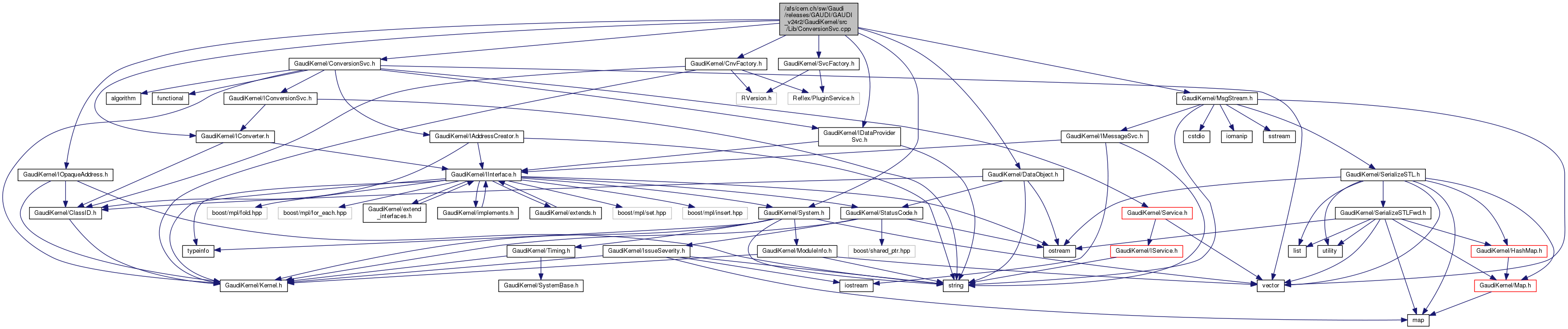 #include "GaudiKernel/MsgStream.h"#include "GaudiKernel/SvcFactory.h"#include "GaudiKernel/CnvFactory.h"#include "GaudiKernel/DataObject.h"#include "GaudiKernel/System.h"#include "GaudiKernel/IConverter.h"#include "GaudiKernel/IDataProviderSvc.h"#include "GaudiKernel/IOpaqueAddress.h"#include "GaudiKernel/ConversionSvc.h"