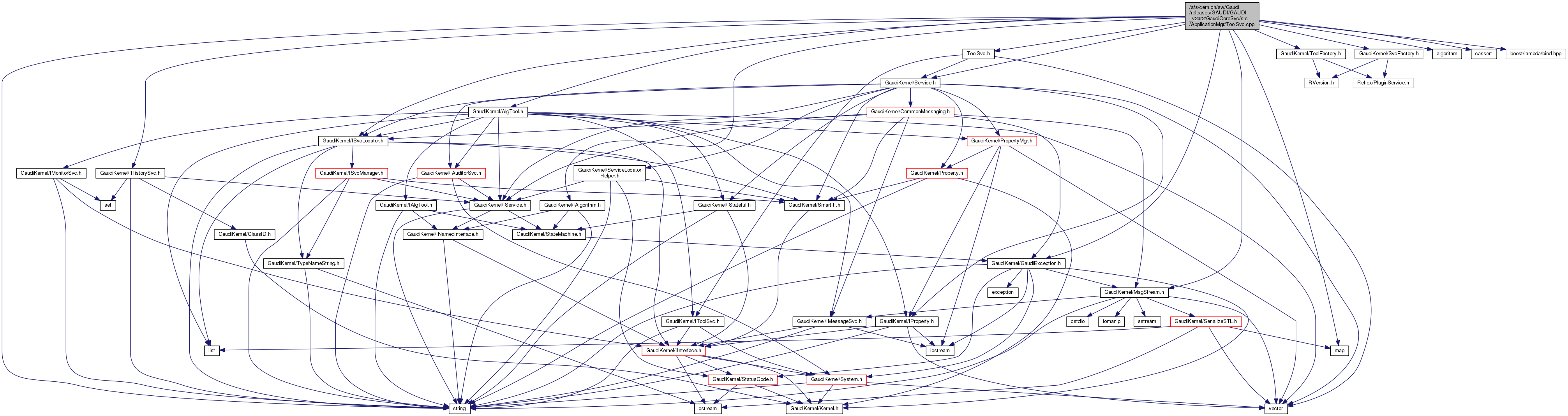 #include "GaudiKernel/MsgStream.h"#include "GaudiKernel/Service.h"#include "GaudiKernel/SvcFactory.h"#include "GaudiKernel/ISvcLocator.h"#include "GaudiKernel/IAlgorithm.h"#include "GaudiKernel/GaudiException.h"#include "GaudiKernel/AlgTool.h"#include "GaudiKernel/IHistorySvc.h"#include "GaudiKernel/ToolFactory.h"#include "ToolSvc.h"#include <algorithm>#include <map>#include <string>#include <cassert>#include "boost/lambda/bind.hpp"