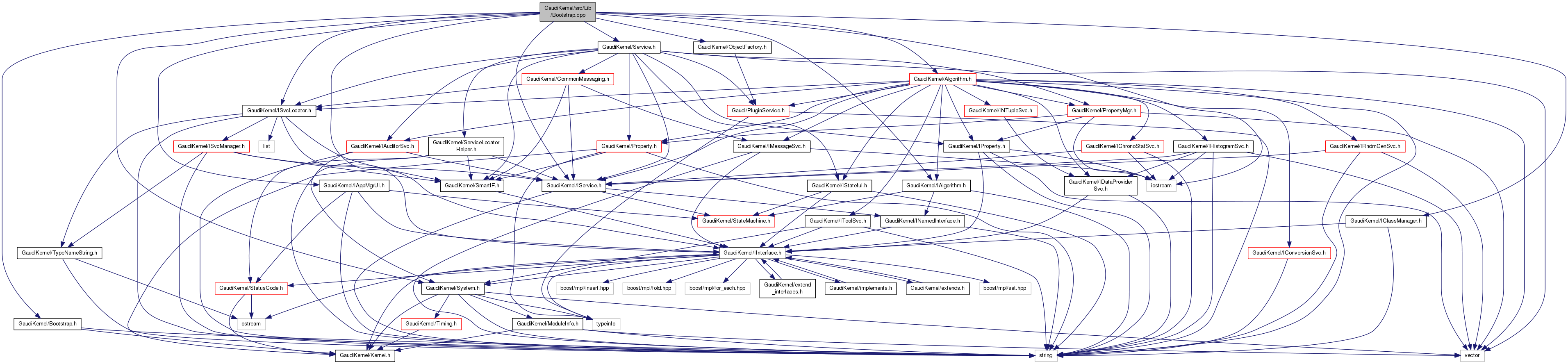 #include <iostream>#include "GaudiKernel/Bootstrap.h"#include "GaudiKernel/System.h"#include "GaudiKernel/IInterface.h"#include "GaudiKernel/IAlgorithm.h"#include "GaudiKernel/IService.h"#include "GaudiKernel/IAppMgrUI.h"#include "GaudiKernel/ISvcLocator.h"#include "GaudiKernel/IClassManager.h"#include "GaudiKernel/ObjectFactory.h"#include "GaudiKernel/Service.h"#include "GaudiKernel/Algorithm.h"