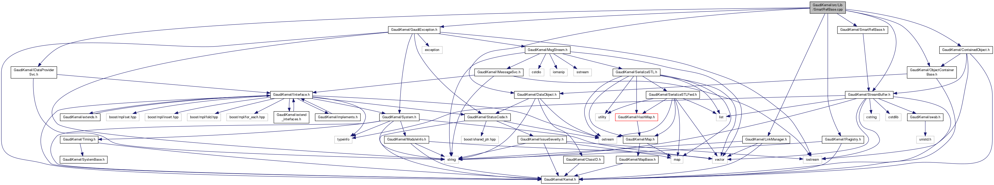 #include "GaudiKernel/IDataProviderSvc.h"#include "GaudiKernel/GaudiException.h"#include "GaudiKernel/IRegistry.h"#include "GaudiKernel/DataObject.h"#include "GaudiKernel/LinkManager.h"#include "GaudiKernel/StreamBuffer.h"#include "GaudiKernel/SmartRefBase.h"#include "GaudiKernel/ContainedObject.h"#include "GaudiKernel/ObjectContainerBase.h"