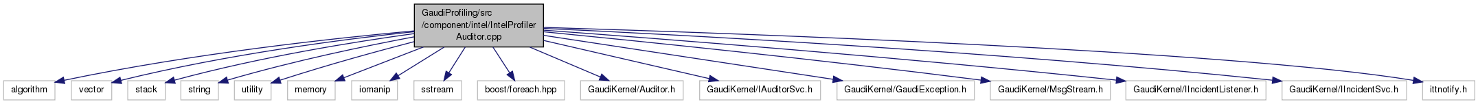 #include <algorithm>#include <vector>#include <stack>#include <string>#include <utility>#include <memory>#include <iomanip>#include <sstream>#include <boost/foreach.hpp>#include "GaudiKernel/Auditor.h"#include "GaudiKernel/IAuditorSvc.h"#include "GaudiKernel/GaudiException.h"#include "GaudiKernel/MsgStream.h"#include "GaudiKernel/IIncidentListener.h"#include "GaudiKernel/IIncidentSvc.h"#include "ittnotify.h"