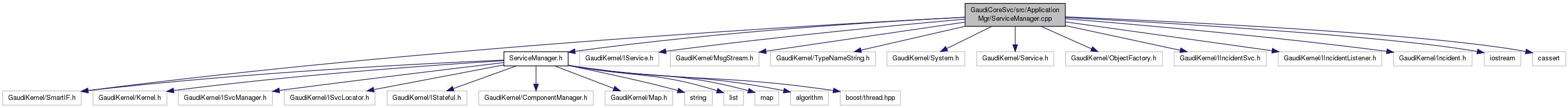 #include "ServiceManager.h"#include "GaudiKernel/IService.h"#include "GaudiKernel/MsgStream.h"#include "GaudiKernel/TypeNameString.h"#include "GaudiKernel/System.h"#include "GaudiKernel/Service.h"#include "GaudiKernel/ObjectFactory.h"#include "GaudiKernel/SmartIF.h"#include "GaudiKernel/IIncidentSvc.h"#include "GaudiKernel/IIncidentListener.h"#include "GaudiKernel/Incident.h"#include <iostream>#include <cassert>