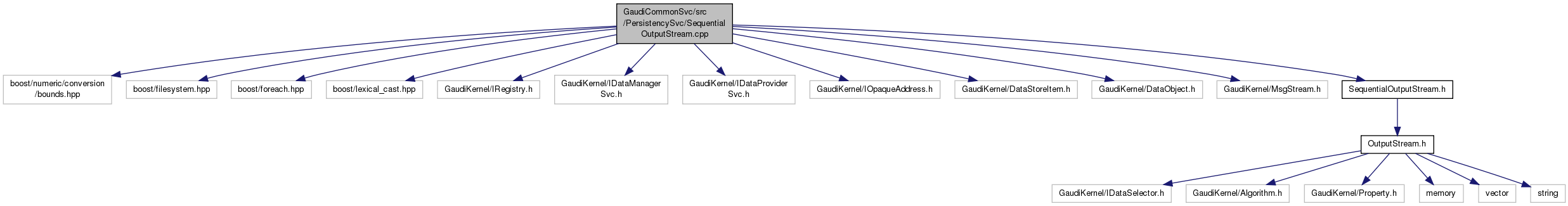 #include <boost/numeric/conversion/bounds.hpp>#include <boost/filesystem.hpp>#include <boost/foreach.hpp>#include <boost/lexical_cast.hpp>#include "GaudiKernel/IRegistry.h"#include "GaudiKernel/IDataManagerSvc.h"#include "GaudiKernel/IDataProviderSvc.h"#include "GaudiKernel/IOpaqueAddress.h"#include "GaudiKernel/DataStoreItem.h"#include "GaudiKernel/DataObject.h"#include "GaudiKernel/MsgStream.h"#include "SequentialOutputStream.h"