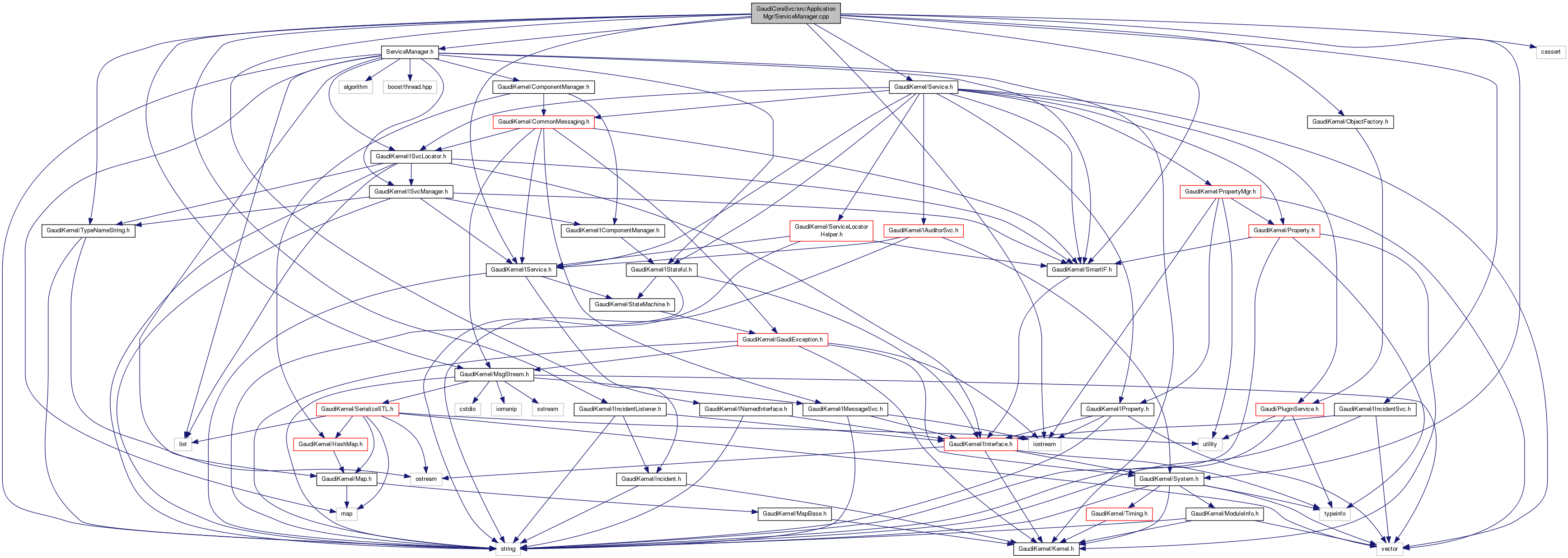 #include "ServiceManager.h"#include "GaudiKernel/IService.h"#include "GaudiKernel/MsgStream.h"#include "GaudiKernel/TypeNameString.h"#include "GaudiKernel/System.h"#include "GaudiKernel/Service.h"#include "GaudiKernel/ObjectFactory.h"#include "GaudiKernel/SmartIF.h"#include "GaudiKernel/IIncidentSvc.h"#include "GaudiKernel/IIncidentListener.h"#include "GaudiKernel/Incident.h"#include <iostream>#include <cassert>