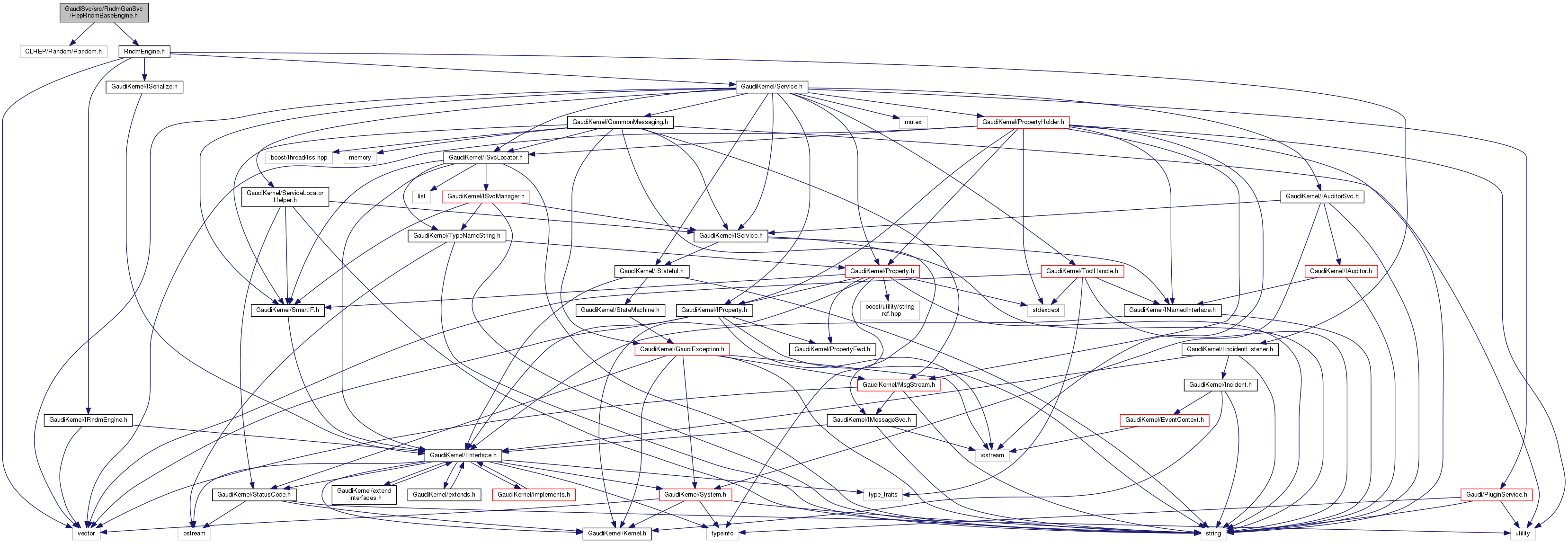 Include dependency graph for HepRndmBaseEngine.h: