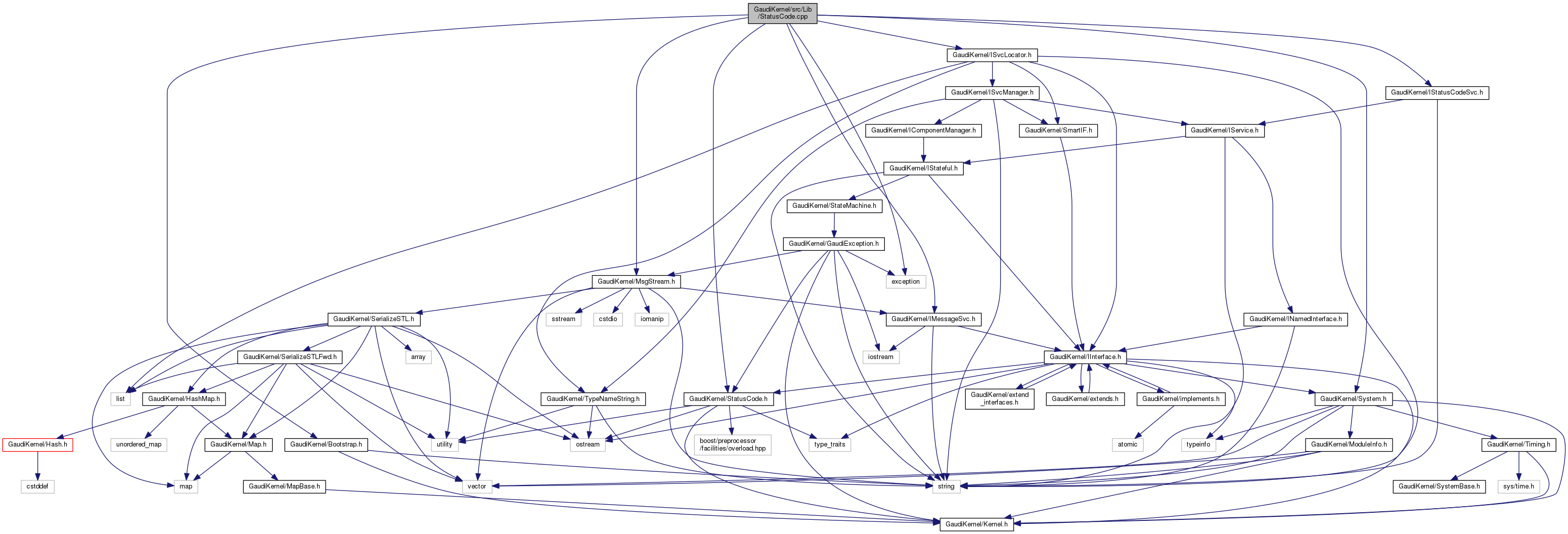 #include "GaudiKernel/StatusCode.h"#include "GaudiKernel/Bootstrap.h"#include "GaudiKernel/IMessageSvc.h"#include "GaudiKernel/IStatusCodeSvc.h"#include "GaudiKernel/ISvcLocator.h"#include "GaudiKernel/MsgStream.h"#include "GaudiKernel/System.h"#include <exception>