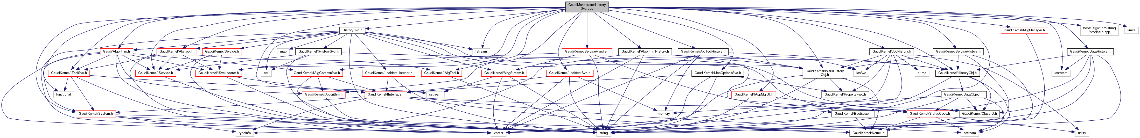 #include "HistorySvc.h"#include <functional>#include "GaudiKernel/HistoryObj.h"#include "GaudiKernel/IVersHistoryObj.h"#include "GaudiKernel/AlgToolHistory.h"#include "GaudiKernel/AlgorithmHistory.h"#include "GaudiKernel/DataHistory.h"#include "GaudiKernel/JobHistory.h"#include "GaudiKernel/ServiceHistory.h"#include "GaudiKernel/ISvcLocator.h"#include "GaudiKernel/AlgTool.h"#include "GaudiKernel/Bootstrap.h"#include "GaudiKernel/IAlgManager.h"#include "GaudiKernel/IAlgTool.h"#include "GaudiKernel/IAlgorithm.h"#include "GaudiKernel/IAppMgrUI.h"#include "GaudiKernel/IIncidentSvc.h"#include "GaudiKernel/IJobOptionsSvc.h"#include "GaudiKernel/IService.h"#include "GaudiKernel/IToolSvc.h"#include "GaudiKernel/ServiceHandle.h"#include "GaudiKernel/System.h"#include <Gaudi/Algorithm.h>#include "GaudiKernel/IAlgContextSvc.h"#include "boost/algorithm/string/predicate.hpp"#include <fstream>#include <iostream>#include <limits>#include <sstream>