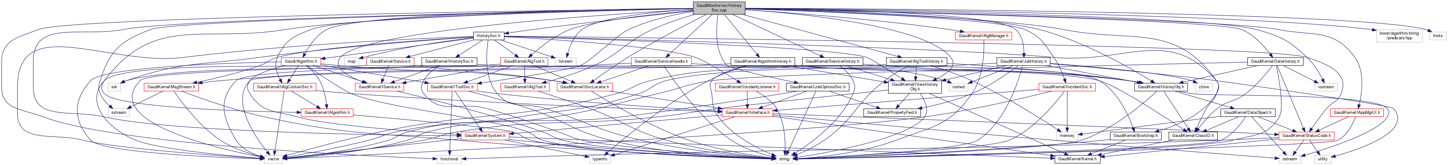 #include "HistorySvc.h"#include <functional>#include "GaudiKernel/HistoryObj.h"#include "GaudiKernel/IVersHistoryObj.h"#include "GaudiKernel/AlgToolHistory.h"#include "GaudiKernel/AlgorithmHistory.h"#include "GaudiKernel/DataHistory.h"#include "GaudiKernel/JobHistory.h"#include "GaudiKernel/ServiceHistory.h"#include "GaudiKernel/ISvcLocator.h"#include "GaudiKernel/AlgTool.h"#include "GaudiKernel/Bootstrap.h"#include "GaudiKernel/IAlgManager.h"#include "GaudiKernel/IAlgTool.h"#include "GaudiKernel/IAlgorithm.h"#include "GaudiKernel/IAppMgrUI.h"#include "GaudiKernel/IIncidentSvc.h"#include "GaudiKernel/IJobOptionsSvc.h"#include "GaudiKernel/IService.h"#include "GaudiKernel/IToolSvc.h"#include "GaudiKernel/ServiceHandle.h"#include "GaudiKernel/System.h"#include <Gaudi/Algorithm.h>#include "GaudiKernel/IAlgContextSvc.h"#include "boost/algorithm/string/predicate.hpp"#include <fstream>#include <iostream>#include <limits>#include <sstream>