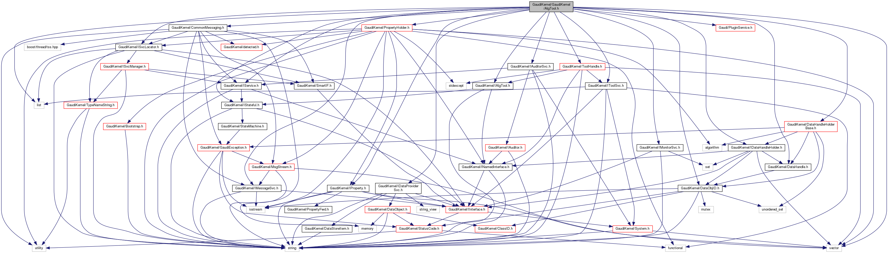 #include "GaudiKernel/CommonMessaging.h"#include "GaudiKernel/DataObjID.h"#include "GaudiKernel/IAlgTool.h"#include "GaudiKernel/IAuditorSvc.h"#include "GaudiKernel/IDataProviderSvc.h"#include "GaudiKernel/IMessageSvc.h"#include "GaudiKernel/IMonitorSvc.h"#include "GaudiKernel/IProperty.h"#include "GaudiKernel/IService.h"#include "GaudiKernel/IStateful.h"#include "GaudiKernel/ISvcLocator.h"#include "GaudiKernel/IToolSvc.h"#include "GaudiKernel/PropertyHolder.h"#include "GaudiKernel/ToolHandle.h"#include <Gaudi/PluginService.h>#include "GaudiKernel/DataHandle.h"#include "GaudiKernel/DataHandleHolderBase.h"#include "GaudiKernel/IDataHandleHolder.h"#include <list>#include <vector>