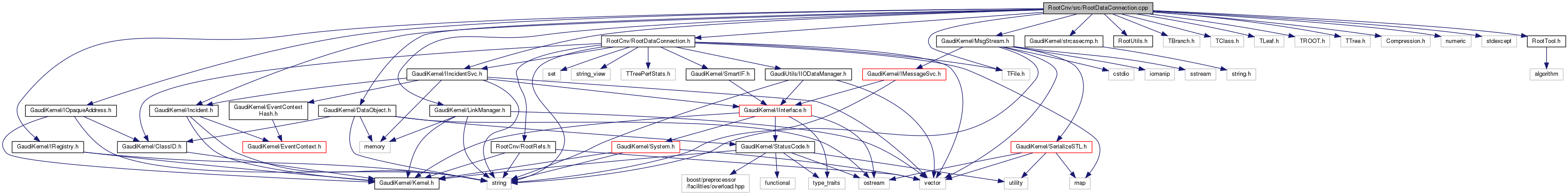 #include "RootCnv/RootDataConnection.h"#include "GaudiKernel/DataObject.h"#include "GaudiKernel/IIncidentSvc.h"#include "GaudiKernel/IOpaqueAddress.h"#include "GaudiKernel/IRegistry.h"#include "GaudiKernel/Incident.h"#include "GaudiKernel/LinkManager.h"#include "GaudiKernel/MsgStream.h"#include "GaudiKernel/strcasecmp.h"#include "RootUtils.h"#include "TBranch.h"#include "TClass.h"#include "TFile.h"#include "TLeaf.h"#include "TROOT.h"#include "TTree.h"#include "Compression.h"#include <numeric>#include <stdexcept>#include "RootTool.h"