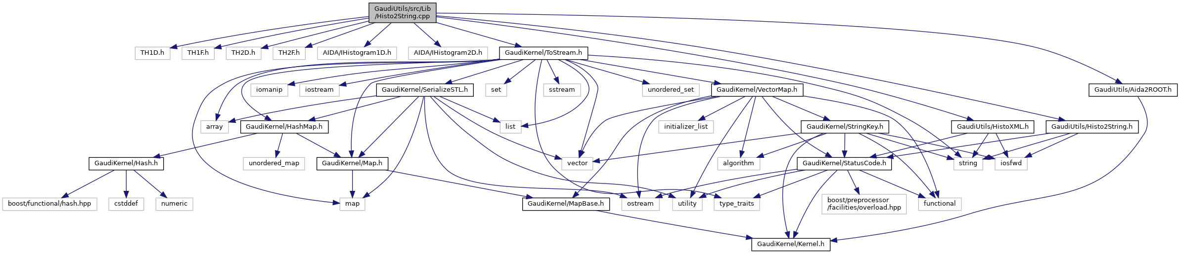 Implementation file for utilities Histo -> string.