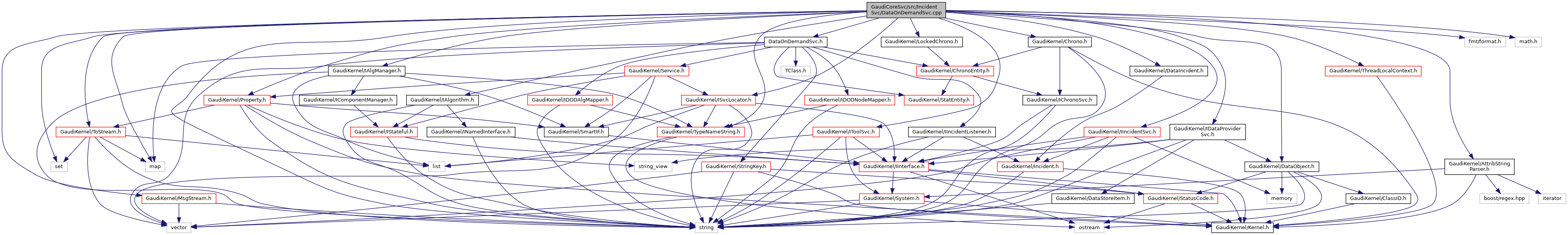 #include "DataOnDemandSvc.h"#include "GaudiKernel/AttribStringParser.h"#include "GaudiKernel/Chrono.h"#include "GaudiKernel/DataIncident.h"#include "GaudiKernel/DataObject.h"#include "GaudiKernel/IAlgManager.h"#include "GaudiKernel/IAlgorithm.h"#include "GaudiKernel/IDataProviderSvc.h"#include "GaudiKernel/IIncidentSvc.h"#include "GaudiKernel/ISvcLocator.h"#include "GaudiKernel/IToolSvc.h"#include "GaudiKernel/LockedChrono.h"#include "GaudiKernel/MsgStream.h"#include "GaudiKernel/Property.h"#include "GaudiKernel/ThreadLocalContext.h"#include "GaudiKernel/ToStream.h"#include "GaudiKernel/TypeNameString.h"#include <fmt/format.h>#include <map>#include <math.h>#include <set>#include <string>