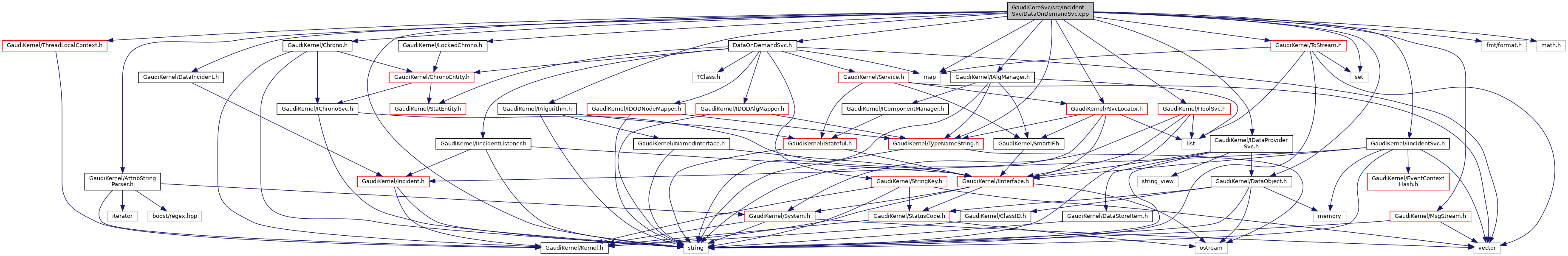 #include "DataOnDemandSvc.h"#include "GaudiKernel/AttribStringParser.h"#include "GaudiKernel/Chrono.h"#include "GaudiKernel/DataIncident.h"#include "GaudiKernel/DataObject.h"#include "GaudiKernel/IAlgManager.h"#include "GaudiKernel/IAlgorithm.h"#include "GaudiKernel/IDataProviderSvc.h"#include "GaudiKernel/IIncidentSvc.h"#include "GaudiKernel/ISvcLocator.h"#include "GaudiKernel/IToolSvc.h"#include "GaudiKernel/LockedChrono.h"#include "GaudiKernel/MsgStream.h"#include "GaudiKernel/ThreadLocalContext.h"#include "GaudiKernel/ToStream.h"#include "GaudiKernel/TypeNameString.h"#include <fmt/format.h>#include <map>#include <math.h>#include <set>#include <string>