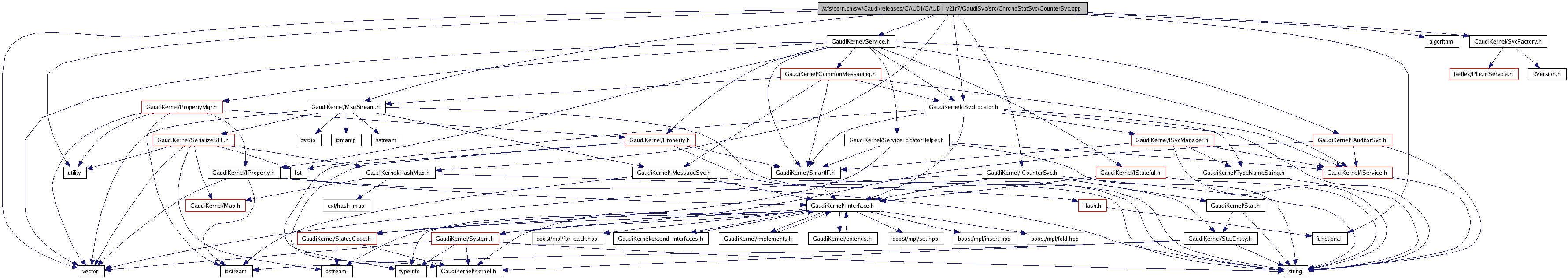 #include <utility>#include <vector>#include <algorithm>#include <functional>#include "GaudiKernel/ICounterSvc.h"#include "GaudiKernel/ISvcLocator.h"#include "GaudiKernel/SvcFactory.h"#include "GaudiKernel/MsgStream.h"#include "GaudiKernel/Service.h"#include "GaudiKernel/HashMap.h"