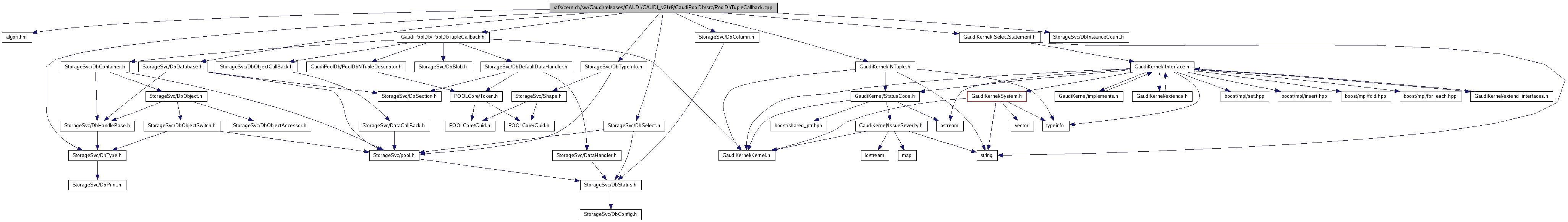 #include <algorithm>#include "GaudiPoolDb/PoolDbTupleCallback.h"#include "GaudiKernel/INTuple.h"#include "GaudiKernel/ISelectStatement.h"#include "StorageSvc/DbType.h"#include "StorageSvc/DbSelect.h"#include "StorageSvc/DbColumn.h"#include "StorageSvc/DbTypeInfo.h"#include "StorageSvc/DbDatabase.h"#include "StorageSvc/DbInstanceCount.h"