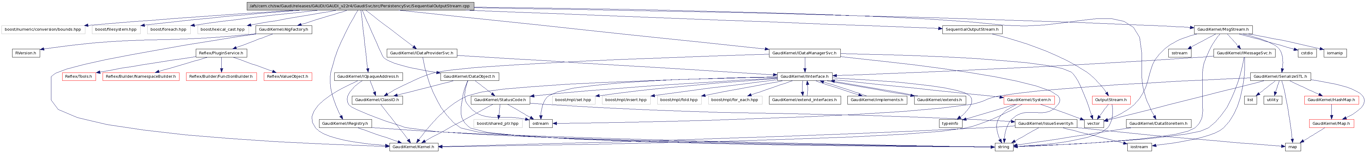 #include <boost/numeric/conversion/bounds.hpp>#include <boost/filesystem.hpp>#include <boost/foreach.hpp>#include <boost/lexical_cast.hpp>#include "GaudiKernel/AlgFactory.h"#include "GaudiKernel/IRegistry.h"#include "GaudiKernel/IDataManagerSvc.h"#include "GaudiKernel/IDataProviderSvc.h"#include "GaudiKernel/IOpaqueAddress.h"#include "GaudiKernel/DataStoreItem.h"#include "GaudiKernel/DataObject.h"#include "GaudiKernel/MsgStream.h"#include "SequentialOutputStream.h"