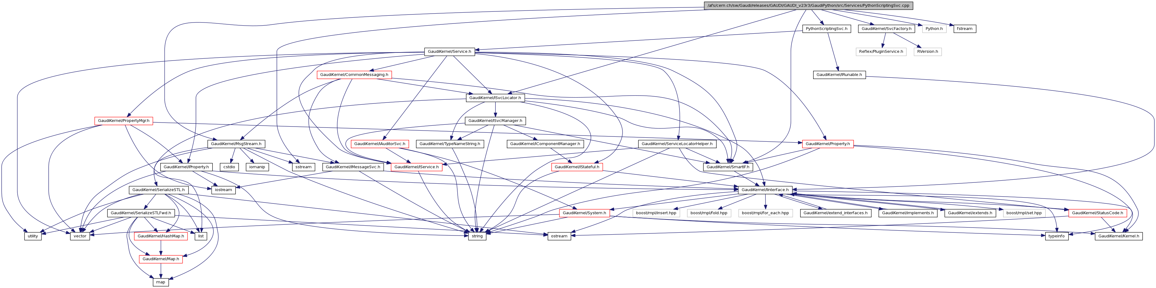 #include "GaudiKernel/MsgStream.h"#include "GaudiKernel/ISvcLocator.h"#include "GaudiKernel/SvcFactory.h"#include "GaudiKernel/SmartIF.h"#include "PythonScriptingSvc.h"#include "Python.h"#include <fstream>#include <sstream>