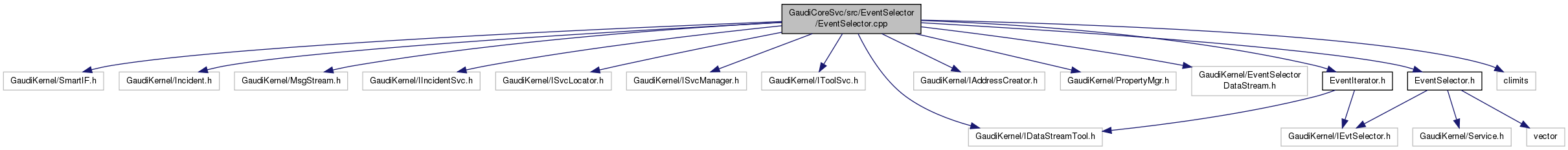 #include "GaudiKernel/SmartIF.h"#include "GaudiKernel/Incident.h"#include "GaudiKernel/MsgStream.h"#include "GaudiKernel/IIncidentSvc.h"#include "GaudiKernel/ISvcLocator.h"#include "GaudiKernel/ISvcManager.h"#include "GaudiKernel/IToolSvc.h"#include "GaudiKernel/IDataStreamTool.h"#include "GaudiKernel/IAddressCreator.h"#include "GaudiKernel/PropertyMgr.h"#include "GaudiKernel/EventSelectorDataStream.h"#include "EventSelector.h"#include "EventIterator.h"#include <climits>