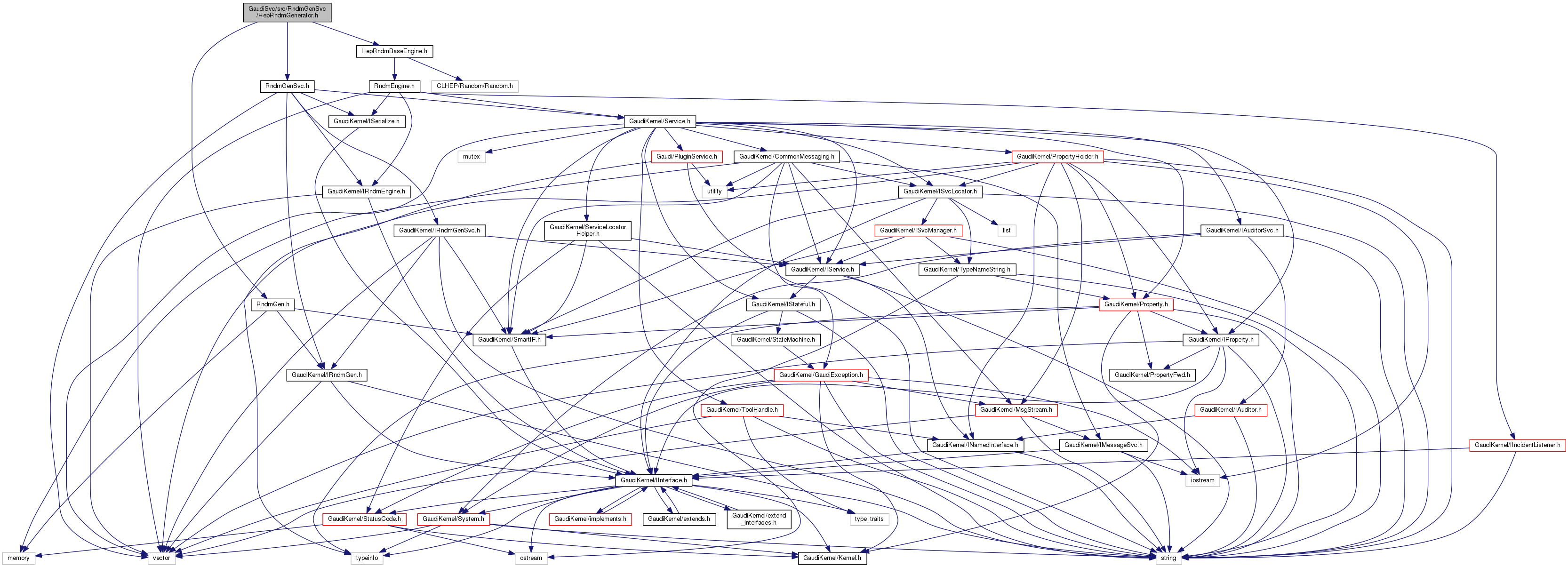 Include dependency graph for HepRndmGenerator.h: