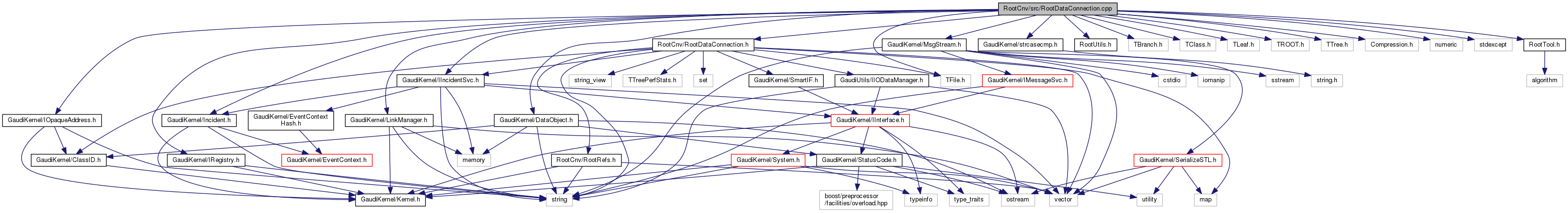 #include "RootCnv/RootDataConnection.h"#include "GaudiKernel/DataObject.h"#include "GaudiKernel/IIncidentSvc.h"#include "GaudiKernel/IOpaqueAddress.h"#include "GaudiKernel/IRegistry.h"#include "GaudiKernel/Incident.h"#include "GaudiKernel/LinkManager.h"#include "GaudiKernel/MsgStream.h"#include "GaudiKernel/strcasecmp.h"#include "RootUtils.h"#include "TBranch.h"#include "TClass.h"#include "TFile.h"#include "TLeaf.h"#include "TROOT.h"#include "TTree.h"#include "Compression.h"#include <numeric>#include <stdexcept>#include "RootTool.h"